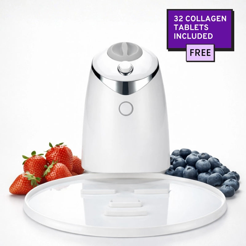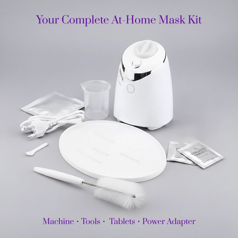 Creating your own fresh skincare is simpler than ever. You just add water, your favorite fruit or vegetable juice, and one of the included collagen tablets. The machine then automatically heats, mixes, and pours the mixture into the custom mold, delivering a perfectly shaped hydrogel mask in just five minutes.